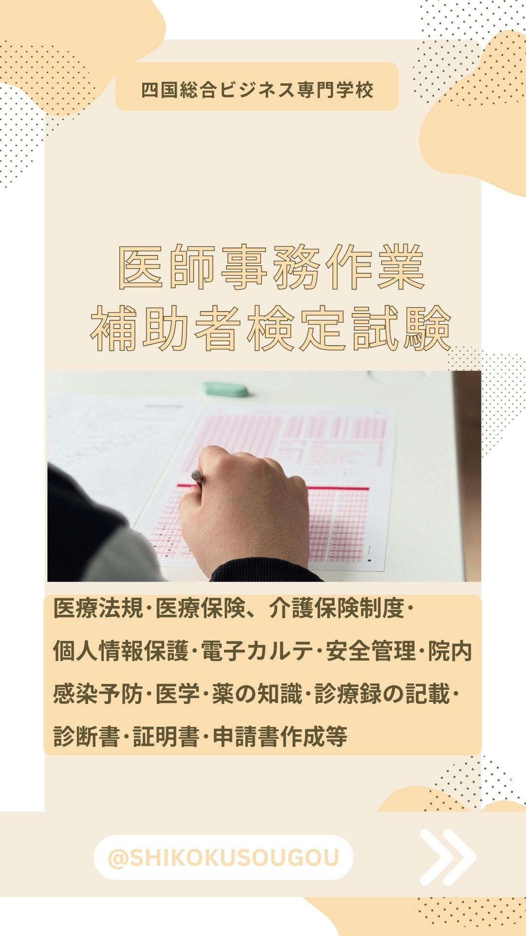 医療事務コースの生徒が、医科医療事務管理士・医療事務・調剤事務・ホスピタルコンシェルジュ・医師事務作業補助者等の試験を受験しています。資格取得後は、医療事務、調剤事務、医療クラーク等、さまざまな医療関係の仕事に就いています。